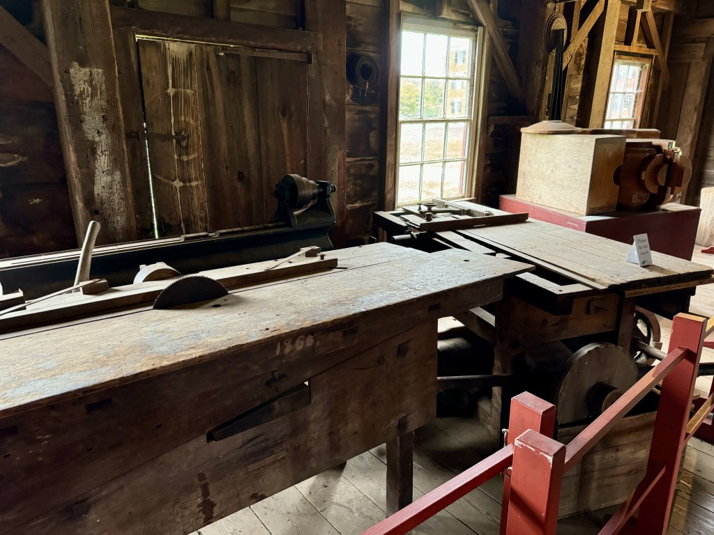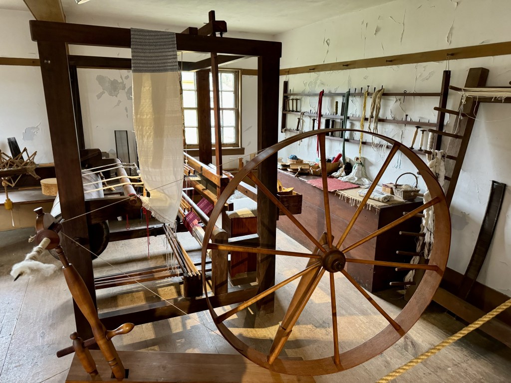 Walking around the village, you see an sick room with hospital beds, adult cradles, and primitive medical supplies. You can see where they used looms and spinning wheels to weave, and where they built furniture in the famous Shaker design of simplicity.