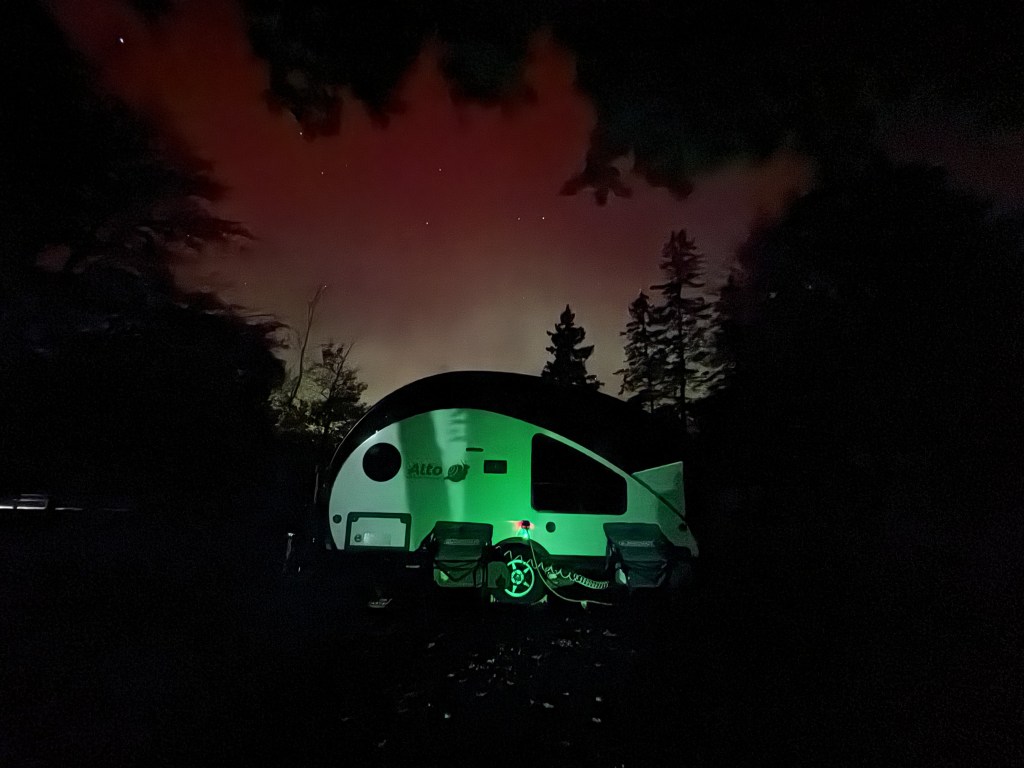 While camping near Bar Harbor, we heard about the anticipated visibility of the Northern Lights. Late one night, we were amazed to see ribbons of green and pink light in the sky. It was almost eerie. We took several photos, which actually show the colors much more vividly than the naked eye can detect.